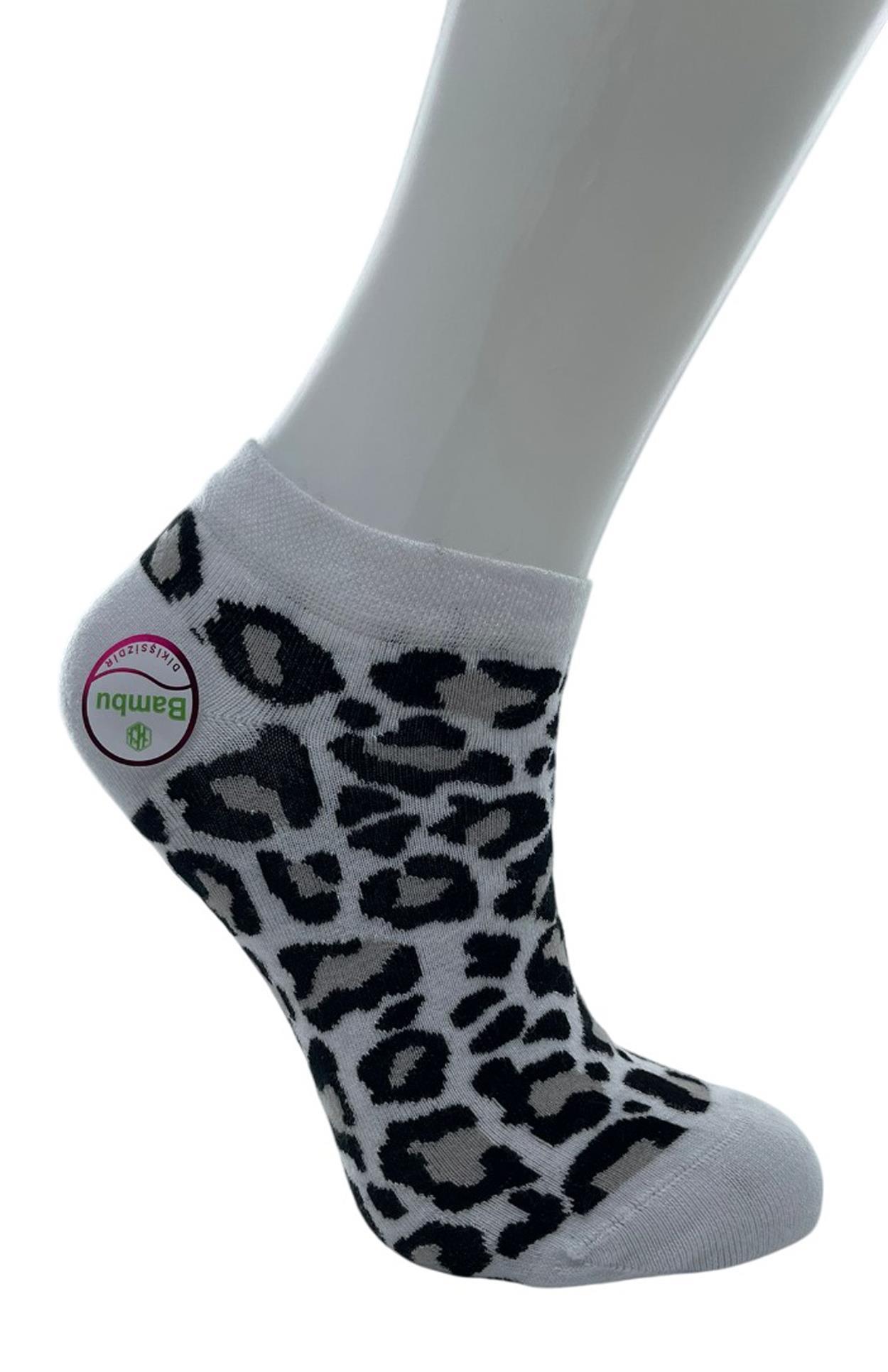 RU-BE Leopar Desenli Bambu Patik Çorap